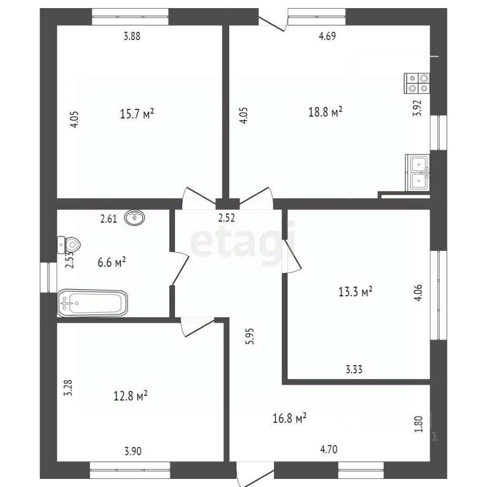 Дом площадью 90 кв. м. под чистовую отделку: штукатурка, стяжка пола, электрика. Никаких черновых работ не потребуется, можно сразу приступать к финальному ремонту по своему вкусу.