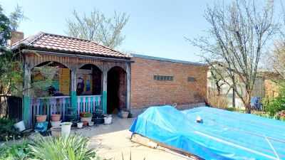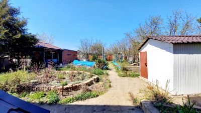 На ухоженном участке расположены кирпичные хоз. постройки, теплицы.