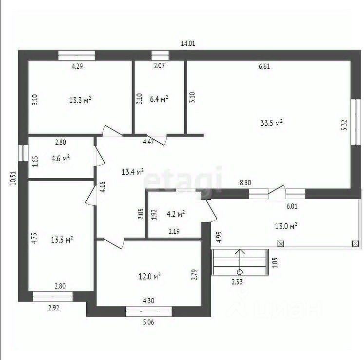 Очень удобная планировка: три раздельные спальни, кухня - гостиная с выходом на террасу, котельная, совмещенный санузел.