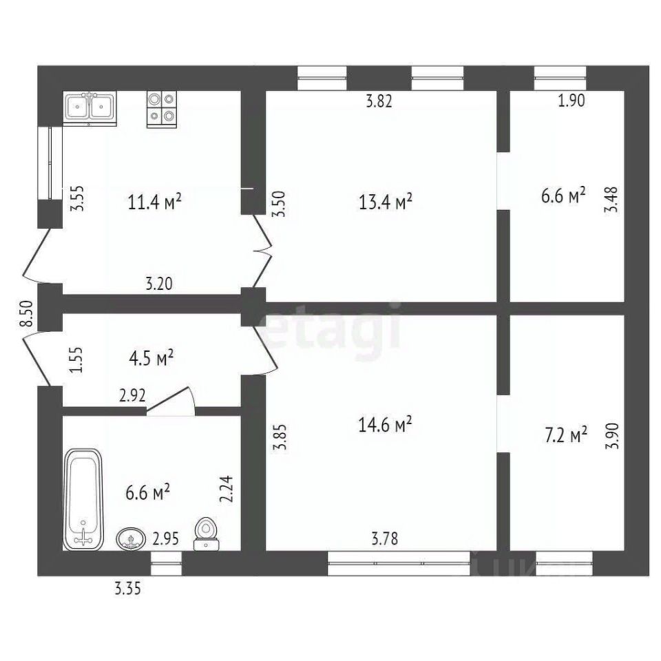 Внутри дома вас ждут 4 просторные спальни, каждая из которых обеспечит комфорт и уединение для всех членов семьи и гостей. Просторная кухня-гостиная станет сердцем вашего дома, где вы сможете собираться всей семьей, готовить и проводить вечера в теплой и уютной атмосфере.