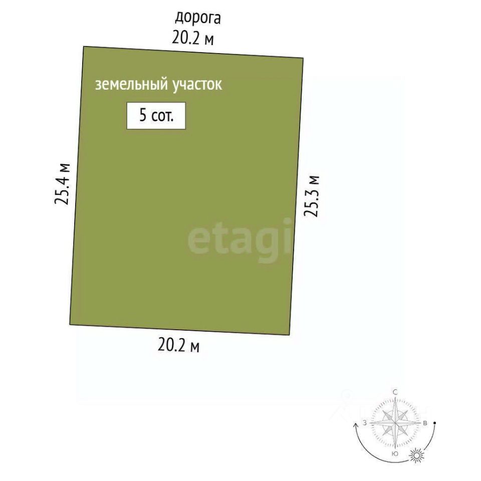 Площадь: 5 соток — ровный, правильной формы, с удобным подъездом.