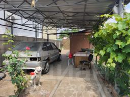 Двор выложен природным камнем, имеется место для отдыха, установлен металлический навес, въезд для авто.