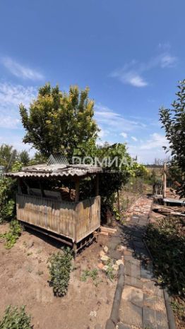 Ухоженный участок с летней кухней, плодовыми деревьями и грядками.