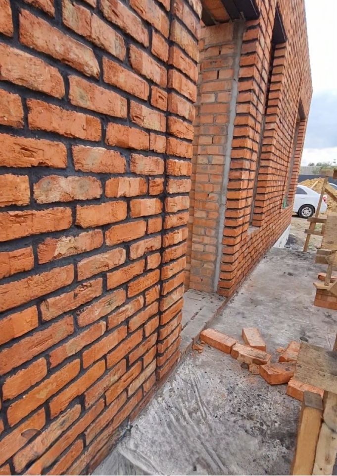 • Кладка из качественного состаренного кирпича+темный раствор.