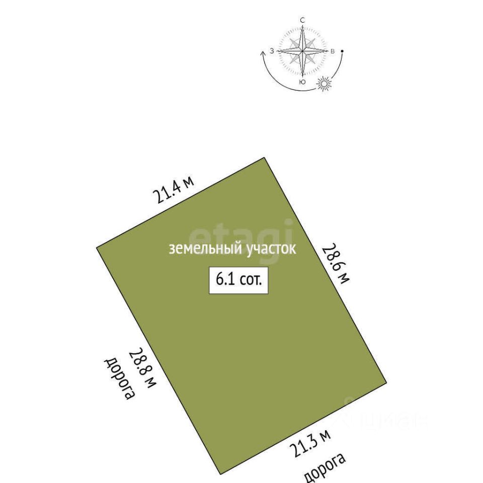 Продается земельный участок площадью 6,1 соток.