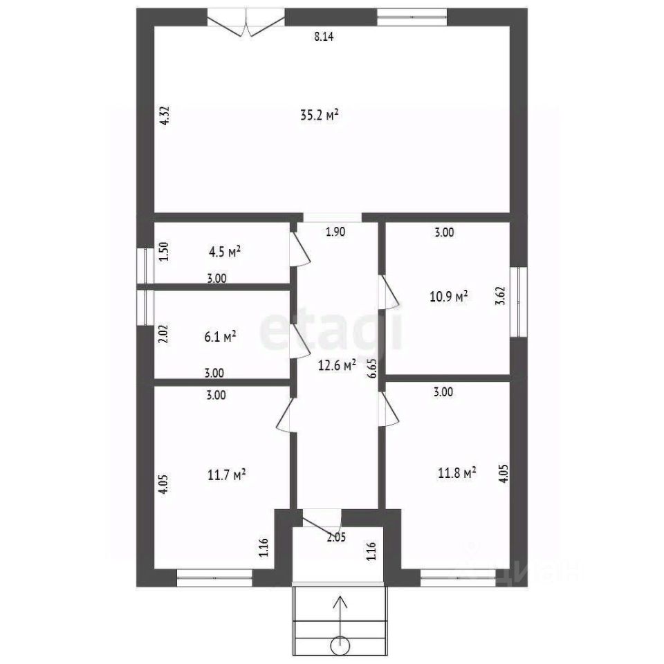 Очень удобная планировка: три раздельные спальни, кухня - гостиная с выходом на террасу, котельная, совмещенный санузел.