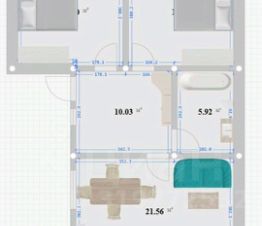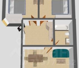 На первом этаже кухня-гостиная, совмещенный санузел ,две спальни.