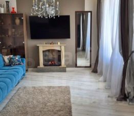 Интерьер выполнен в светлых тонах с акцентом на качественные материалы и декоративные элементы. Гостиная оборудована камином и большим телевизором, кухня оснащена всей необходимой техникой. На территории дома есть терраса, где можно наслаждаться свежим воздухом.