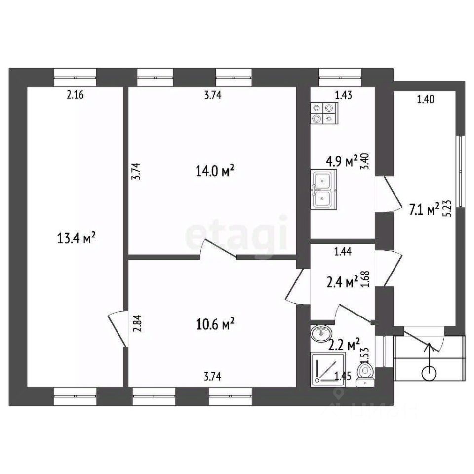 Трехкомнатный кирпичный дом площадью 54,3 м² расположен на долевом участке 2,3 сотки в районе Железнодорожный. Земля относится к категории ИЖС, что позволяет использовать ее для постоянного проживания или дальнейшего строительства. Дом одноэтажный, с удобной планировкой, готов к заселению — выполнен косметический ремонт, проведены все необходимые коммуникации: газовое отопление, центральное водоснабжение, электричество и выгребная канализация. Санузел расположен внутри дома, что обеспечивает комфорт в любое время года. Участок благоустроен: есть место для парковки, зона под мангал или огород, асфальтированный подъезд и общий двор.
