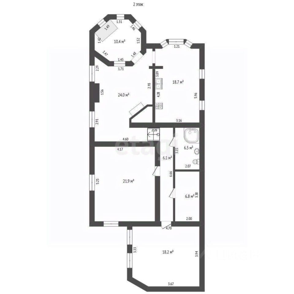 Кухня площадью 18,7 м² на втором этаже полностью укомплектована встроенной бытовой техникой, что позволит вам готовить любимые блюда с максимальным комфортом. В доме предусмотрены два санузла, расположенных на первом и втором этажах, что добавляет удобства в повседневной жизни.