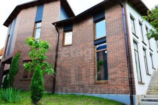 Архитектура здания сочетает функциональность и эстетику: фасады выполнены из клинкерного кирпича, натурального камня и дерева, что обеспечивает долговечность и гармоничное восприятие. Проект разработан известной архитектурной мастерской с соблюдением современных строительных норм. Дом двухэтажный, с продуманной планировкой: три спальни (одна на первом этаже), детская, две ванные комнаты, просторная кухня-столовая со вторым светом, создающим ощущение простора. Окна спален выходят либо в зеленую зону ботанического сада, либо в приватный двор, обеспечивая тишину и уединенность.