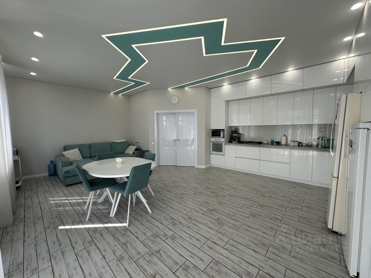 - Большая кухня-гостиная с дорогой техникой и стильным гарнитуром