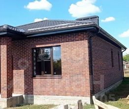 - Дом построен из кирпича. Панорамное остекление с выходом на задний двор.
