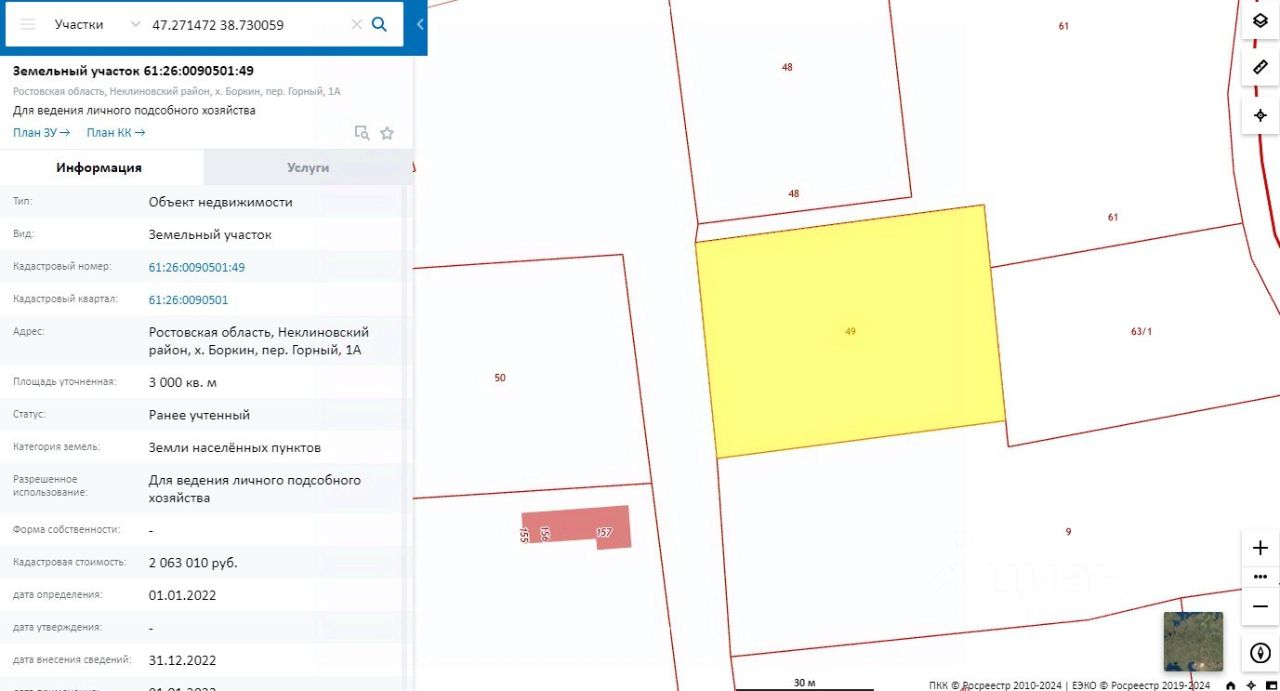 Арт. 69293251 Продаётся участок 30 соток в х. Боркин, Неклиновский район, пер. Горный 1А