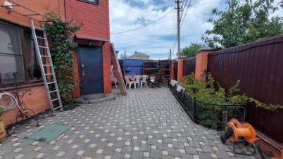 Кирпичный забор с автоматическими ролл- воротами. Мангальная, зона отдыха, въезд на несколько авто. Полисадник с зелеными насаждениями. двор облагорожен фигурной дорогостоящей плиткой.
