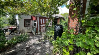 Участок прямоугольной формы с ровным фасадом отличается продуманной организацией пространства: территория полностью огорожена металлическим забором, что гарантирует приватность и безопасность. Помимо жилой зоны, здесь есть огород и хозяйственная постройка, а в центре участка сохранены виноградные плетения, создающие уютную атмосферу.