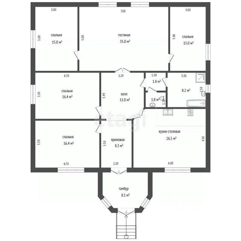 Просторный дом площадью 236.3 м², построенный в 2008 году, предлагает комфорт для постоянного проживания всей семьи. Объект отличается качественным дизайнерским ремонтом, выполненным в светлой нейтральной гамме с использованием надежных материалов. Планировка включает пять изолированных комнат, что обеспечивает приватность и удобство. Современная кухня оснащена всей необходимой встроенной техникой, а стильные санузлы дополняют картину современного жилья. Ключевые инженерные системы — автономное газовое отопление и центральное водоснабжение — гарантируют независимость и комфорт в любое время года. К дому примыкает ухоженная территория с гаражом на одно автомобильное место, практичным погребом для хранения запасов, а также террасой для отдыха на свежем воздухе. Участок ИЖС облагорожен: высажены плодовые деревья и цветник, организовано уличное освещение и система видеонаблюдения для безопасности. Расположение в районе с развитой инфраструктурой обеспечивает близость к школе и остановке общественного транспорта, что делает ежедневные маршруты простыми и быстрыми. Данный объект сочетает преимущества загородной жизни с доступностью городских услуг.