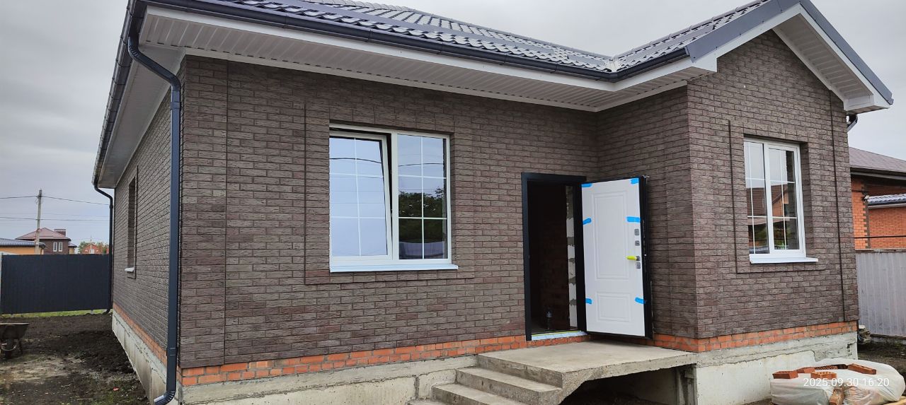 В доме три отдельные спальни, просторная кухня-гостиная, совместный санузел, кладовая-топочная с выводом под отдельный сан узел. Качественная входная дверь с термо разрывом, окна Rehau с энергосберегающими стеклопакетами.