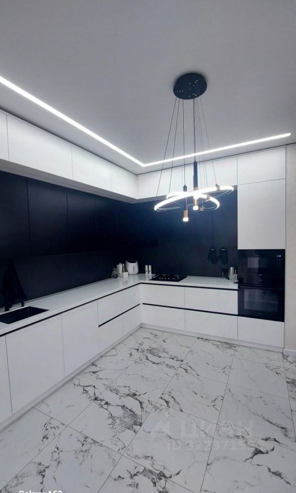 Элегантная кухня-гостинная 30 кв.м.имеет выход во внутренний двор, где можно будет сделать террасу или посадить деревья, цветы и расположить зону летнего отдыха, по своему желанию.