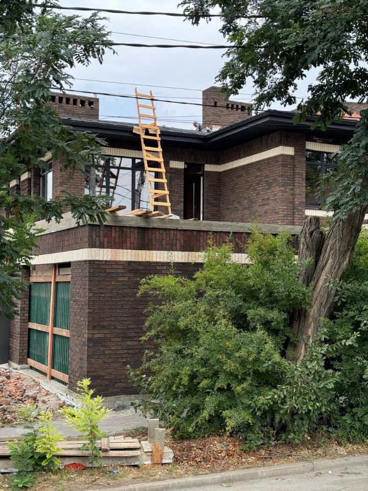 Дом построен из кирпича ручной формовки на тёмном шве.