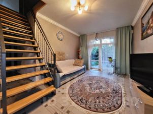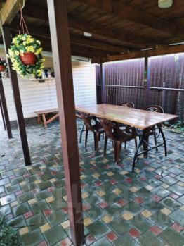 Участок ровный, его площадь составляет 6 соток (20 30 м). Двор полностью благоустроен, с фруктовым садом, подъездной дорогой и тротуарами из тротуарной плитки. На территории есть постройки: летняя кухня, хозяйственное помещение с погребом, отдельный душ и туалет, а также зона для барбекю.