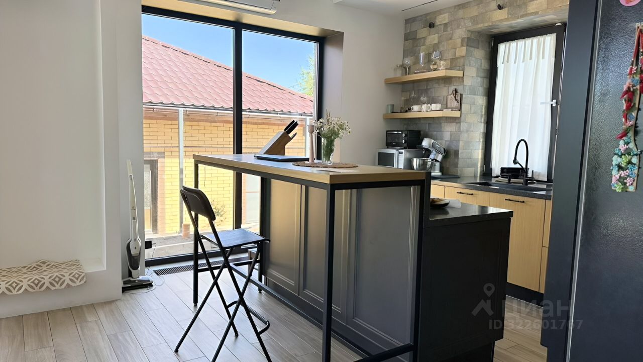 Просторная кухня-гостиная оснащена всей необходимой техникой.