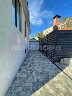 - двор весь в плитке с местами для палисадника