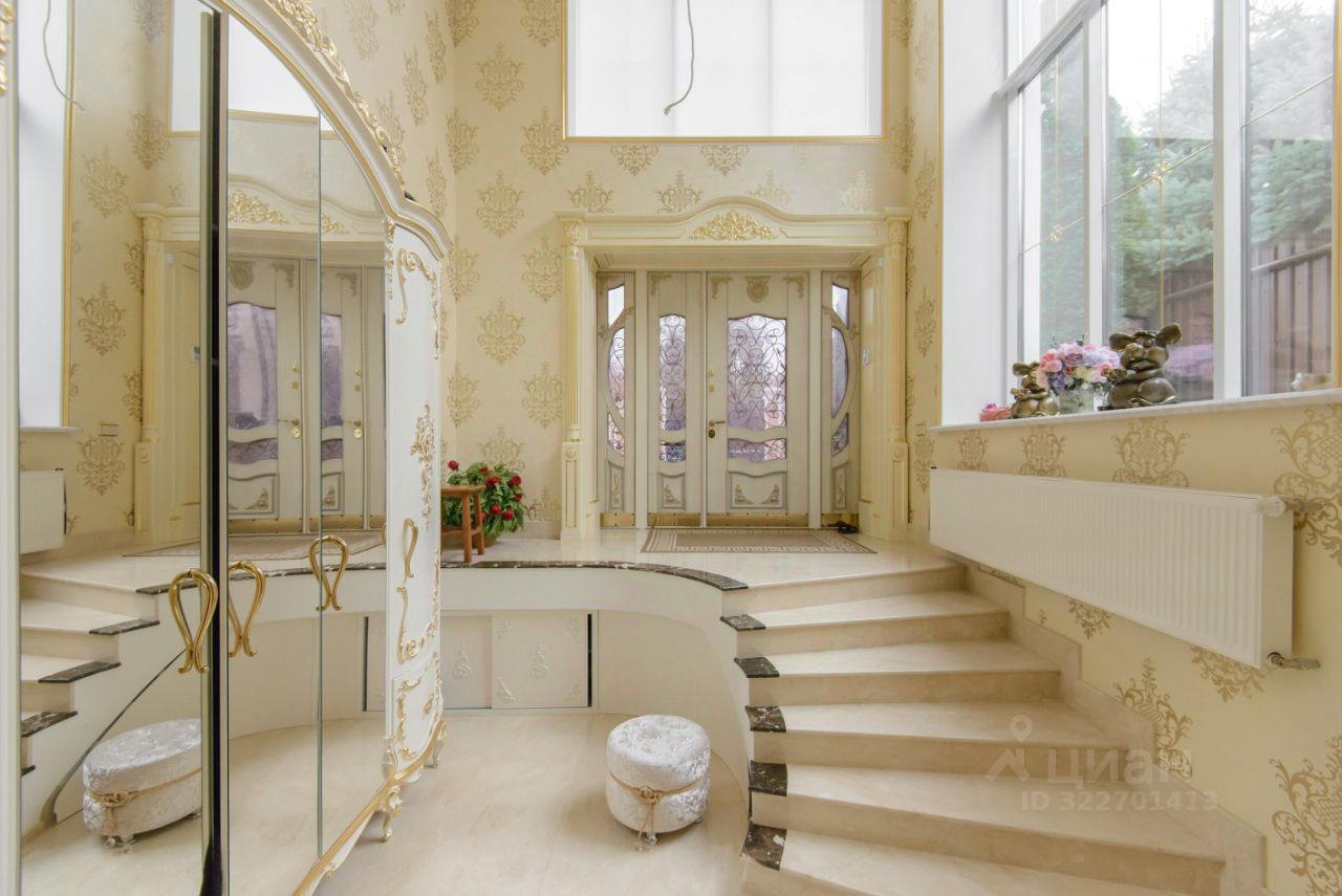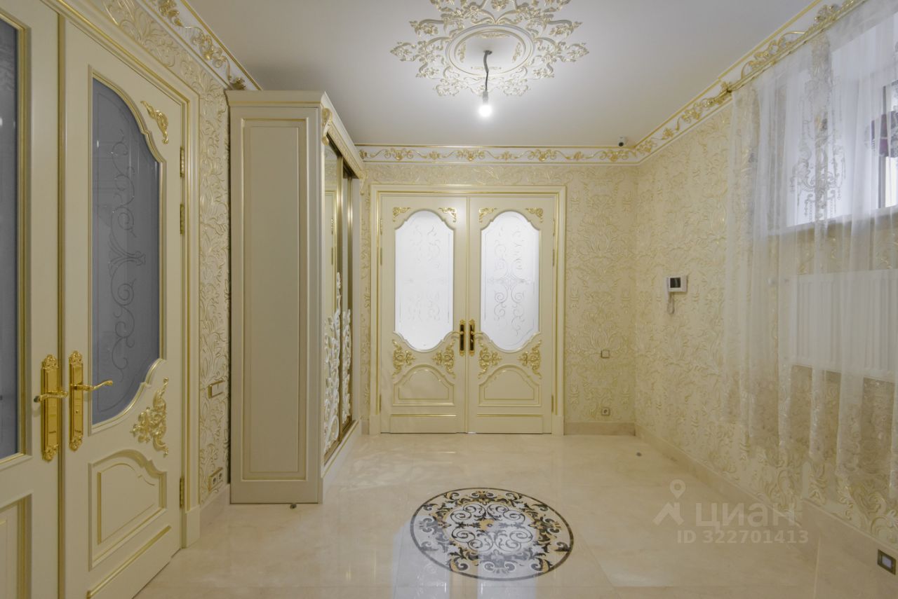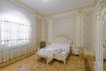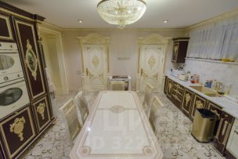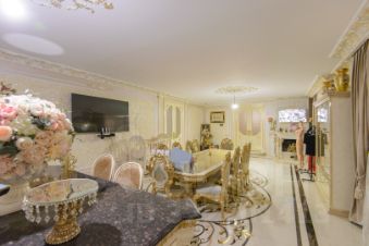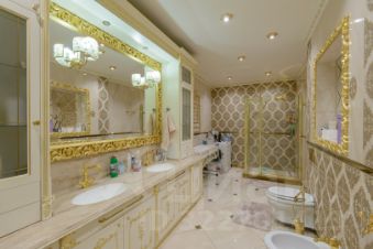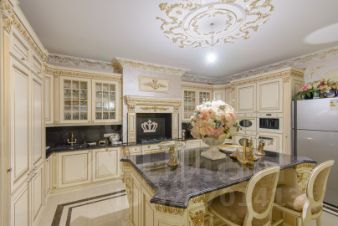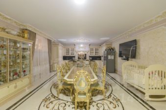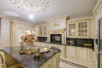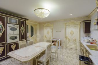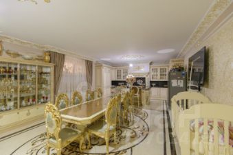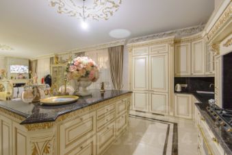 2 больших кухни 67 м кв и 25 м. со встроенной мебелью и техникой, банкетный зал 80 м кв., 3 санузла, 4 спальни, в одной из которых есть личный санузел и гардеробная. Интерьер выполнен командой профессионалов качественными отделочными материалами.