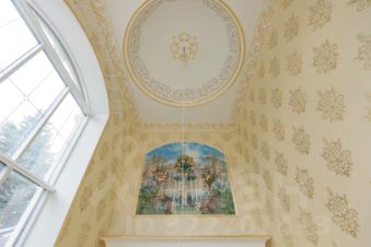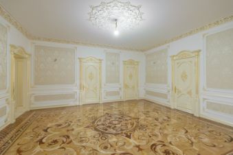 Обои расписные ручной работы, дворцовый паркет. На первом этаже плитка и система "теплый пол".