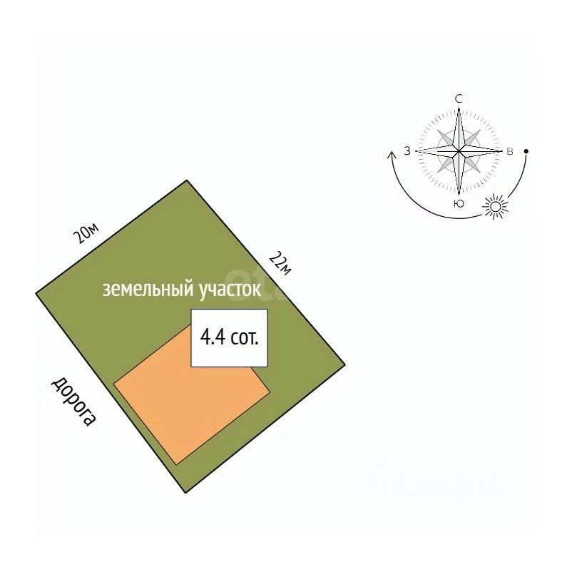 Участок площадью 4,4 сотки расположен в районе с развитой инфраструктурой: в шаговой доступности находятся школа, магазины, аптека и остановка общественного транспорта.
