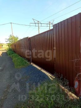 Участок огорожен забором из профнастила с откатными воротами, что обеспечивает безопасность и удобный подъезд.