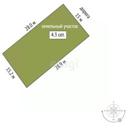 Участок 15м по фасаду на 28м по глубине.