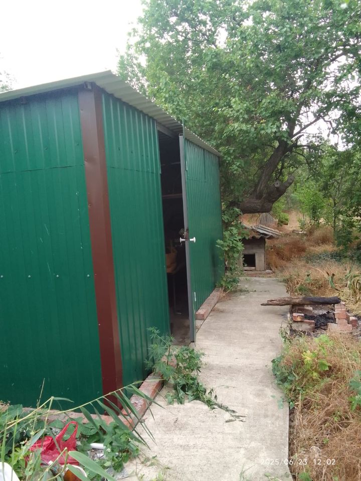 Во дворе бетонная площадка, новая металлическая беседка с виноградником, сарай из мет профиля примерно 3,5*4 м, гараж с мастерской, с ямой и сухим подвалом-стены ракушечник.