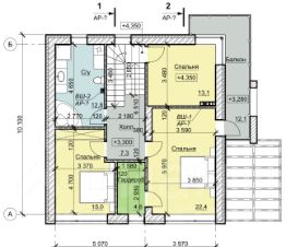 2 этаж: 3 спальни, 2 санузла, гардеробная, балкон