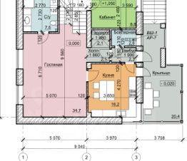 1 этаж: гостиная, кухня, кабинет, санузел, бойлерная, гардероб