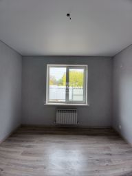 Дом построен в 2025 году и готов к круглогодичному проживанию. В нём три комнаты (общей площадью 37,5 кв. м), просторная кухня (30,8 кв. м) и совмещённый санузел. Высота потолков — 2,65 м, что создаёт ощущение простора и свободы. Дом подключён ко всем необходимым коммуникациям: электричество, водоснабжение, газ, канализация. Отопление обеспечивается индивидуальным котлом.