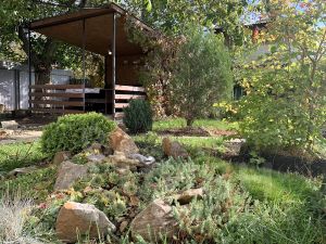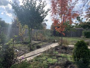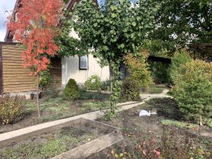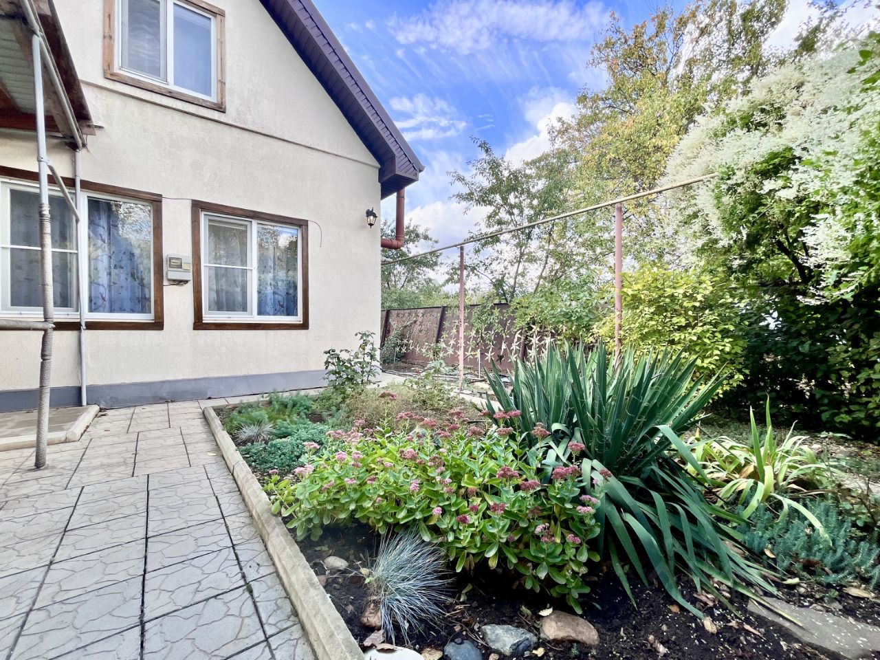 Большой плодоносящий сад, в котором растут груша, черешня, яблоня, абрикос, фундук, грецкий орех, рябина, малина, ежевика, клубника, смородина. Много декоративных растений: туи, можевельники, ель, сосна, розы, жимолость, сортовые ирисы, глициния и много других интересных растений
