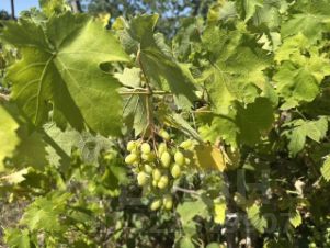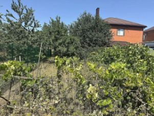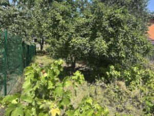 На участке высажены фруктовые деревья, очень много винограда, ягодные кустарники (малина, смородина, крыжовник).