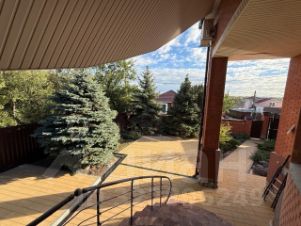 Площадь дома — 340 м², участок 5 соток + 2 сотки преддомовая территория, выложенная брусчаткой и оформленная под парковку.