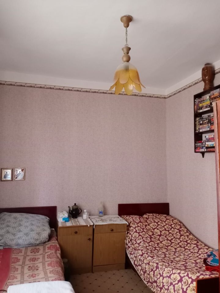 Дом строили для себя в 1988 году. В доме три жилых комнаты (18+8+7) м.кв., прихожая /коридор ( 5,6) м.кв., кухня гостиная-столовая(11,5) м.кв, совмещённый сан.узел душ (4). Состояние хорошее жилое ( косметический ремонт конечно же нужен - под ваши приоритеты). Дом очень тёплый. На всё установлены счётчики. Во дворе летняя кухня с газом 22.9 м.кв., гараж 29 м.кв., хороший подвал, летний душ, уличный туалет всё кирпичное. Дом подойдет для небольшой семьи, или для супругов, уставших от городской суеты. Свет, газ, вода, яма сливная. Окна хорошие деревянные - делали на заказ. Навес.