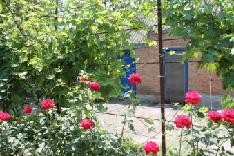 Дом расположен внутри двора, перед домом палисадник с цветами и вечно зелёными кустарниками. На участке плодоносящие груша, яблоня, черешня, вишня, малина, смородина, клубника. Виноград 3х видов. Большой орех перед двором. И много места для ваших насаждений которые будут радовать вас.