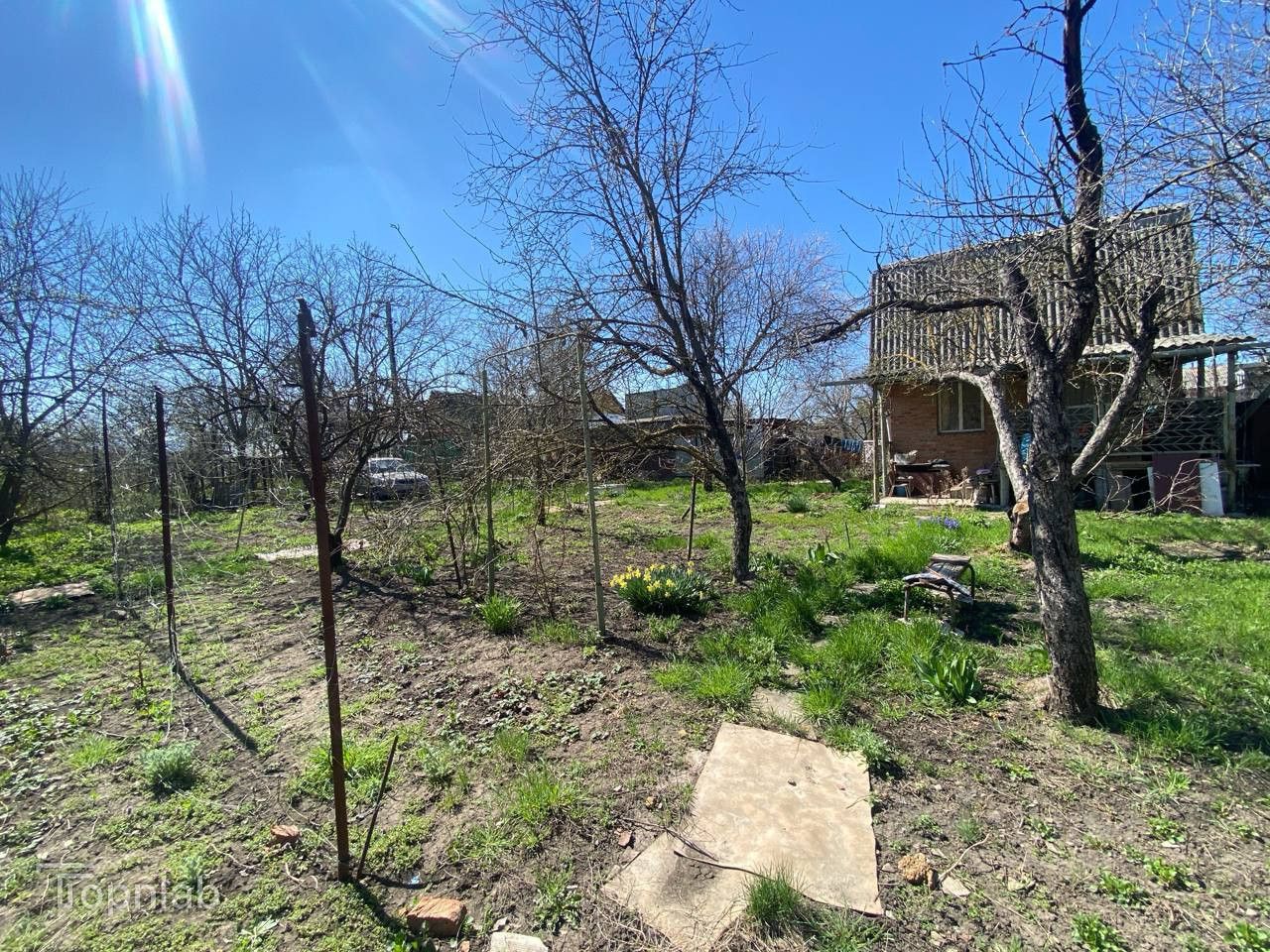 Есть въезд для одной машины, соседи проживают на постоянной основе. Также на участке есть фруктовый сад.
