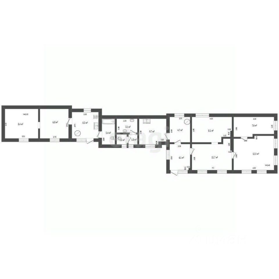 Помещение 1: 4 жилые комнаты, кухня, раздельный санузел