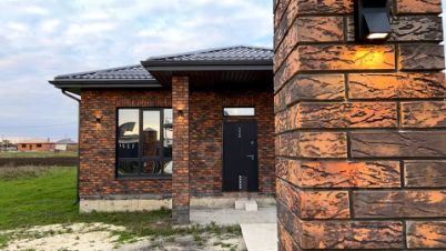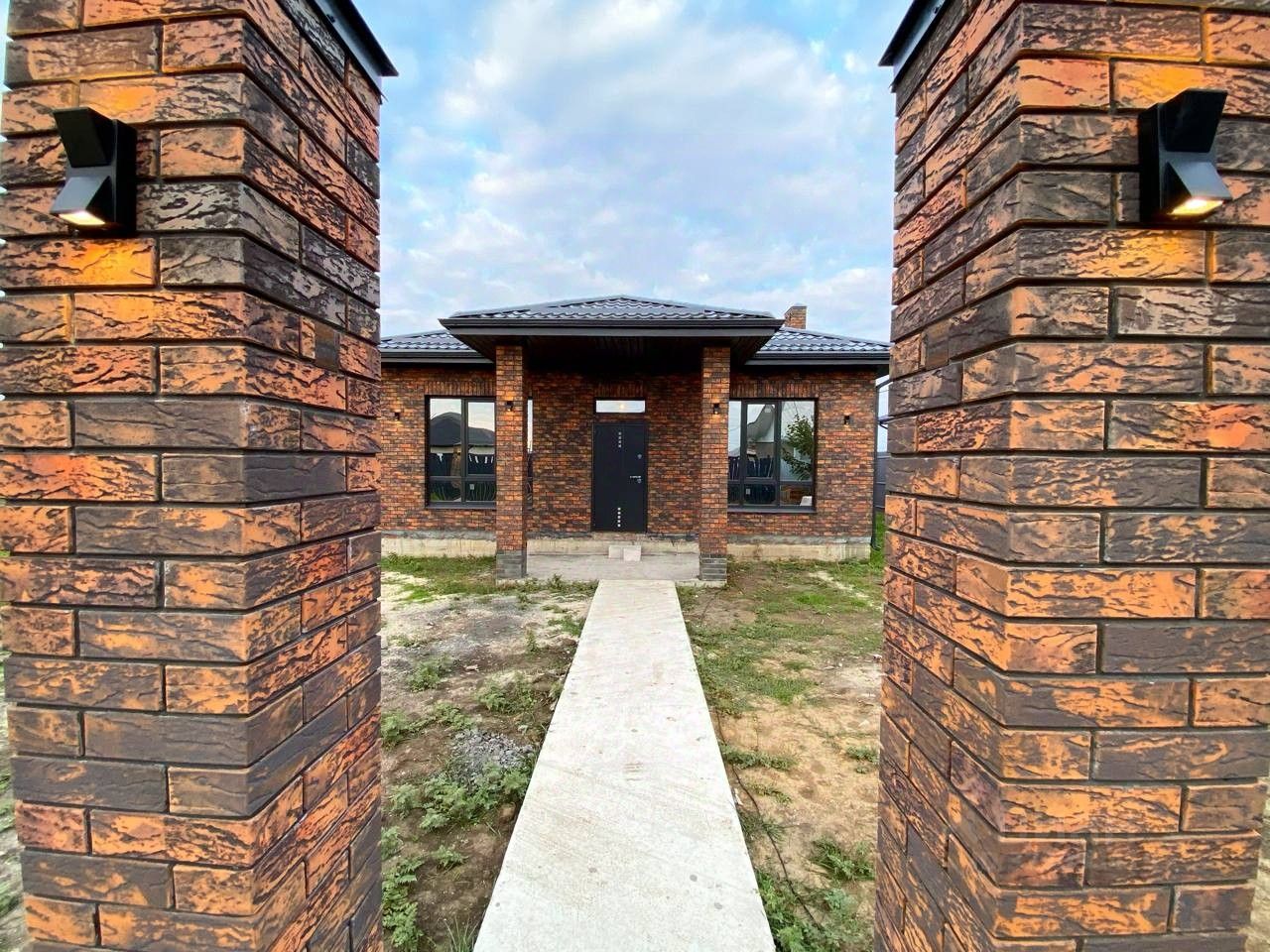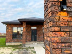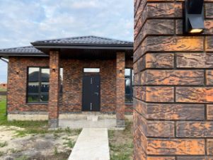 Фасад облицован керамическим декоративным кирпичом и украшен архитектурной подсветкой.