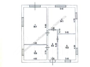 Общая площадь дома 97 кв.м, кухня-гостиная 30 кв.м, две комнаты 24 кв.м и 16 кв.м, санузел 12 кв.м, высота потолков 3 м.