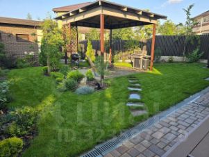 В саду в соответствии с ландшафтным проектом выполнена посадка интересных деревьев и хвойных, кустарников и цветов, имеется газон. Все растения находятся на автополиве. В центре ландшафтной композиции беседка, вымощенная натуральным камнем.