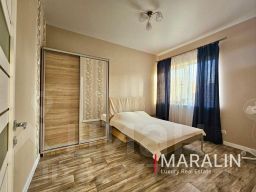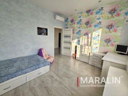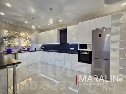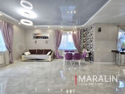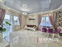 В доме выполнен современный качественный ремонт, установлена вся необходимая мебель и бытовая техника. Напольные покрытия — плитка и ламинат, стены оклеены обоями. На первом этаже и в санузлах проложена система тёплого пола. Кухонный гарнитур с большой рабочей зоной выполнен на заказ и оснащён встроенной техникой. В комнатах установлены сплит-системы.