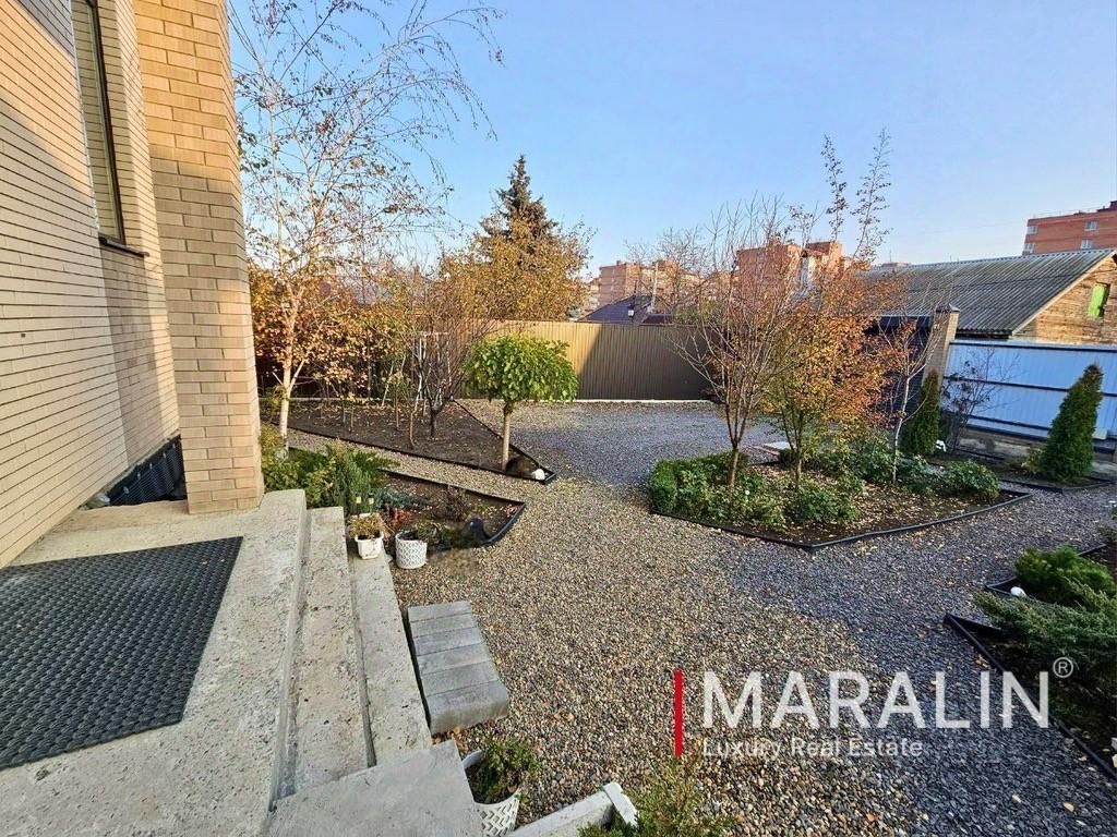 Участок благоустроен: есть место для бассейна, высажены плодовые и декоративные деревья и цветы. Также имеется въезд на 6 автомобилей. За домом расположена дренажная система. Есть возможность расширения участка. Асфальтированная улица. Развитая инфраструктура.