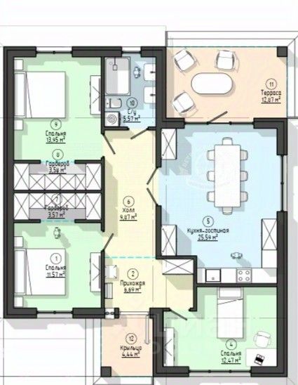 Современная планировка: 3 жилые комнаты, кухня -гостиная с выходом на мансарду, просторная прихожая, котельная, 2 санузла , 2 гардеробные.