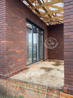 Использовано панорамное остекление, на крыше будет уложена металлочерепица.